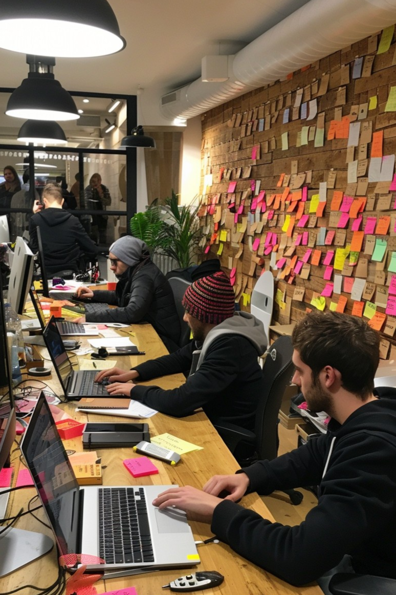 A developer office needs ergonomic desks, good chairs, fast computers, dual monitors, and high-speed internet. Meeting rooms, quiet areas, and collaboration spaces support teamwork and focus. Clean restrooms, air-conditioning, and a pantry improve comfort.